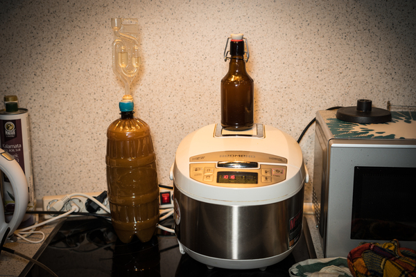 Вот они все вместе. Сиська-бродильня, праймер и мультиварка-пивоварня.
