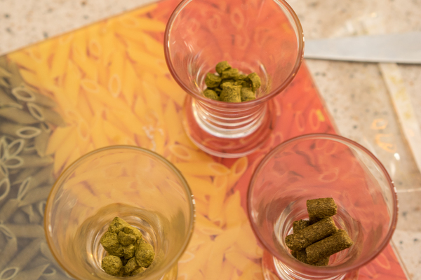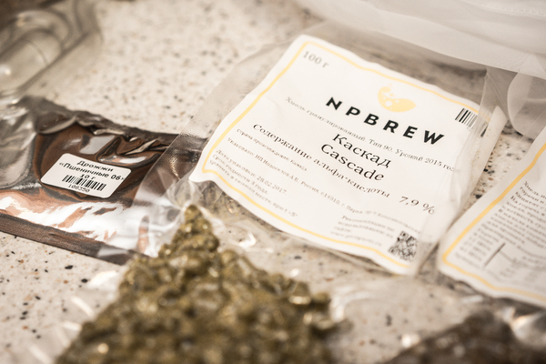 Хмель в гранулах разной формы так что не перепутаем. Каскад слева, он мелкий: