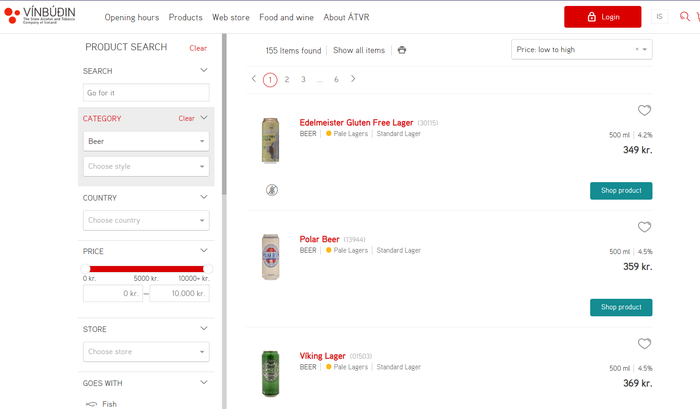 ... за 349 крон, или 217,95 р. Ну хотя бы объем православные 0,5. Если же хочется именно родного исландского, то, в принципе, стартовые цены лишь немногим больше - тот же "Викинг" за 369 крон именно местный.