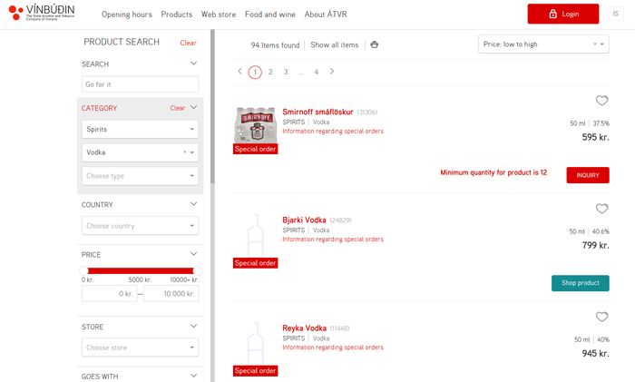 В общем, в силу госмонополии, коей уже 65 лет, за бухлишком - строго в магазины Vínbúðin. Их немногим больше полусотни на всю страну. Открываются поздно, закрываются рано (зависит от района, даже в пределах одного Рейкъявика).