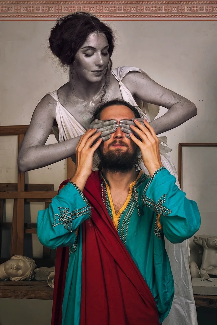 Человек (Пигмалион) теряет «себя» (из вида, из поля зрения), когда погружается в «себя» (когда совокупляется с Галатеей). Галатея - это то, что окружает человека, а не он "сам". Галатея - это "другие" люди (а не он "сам").