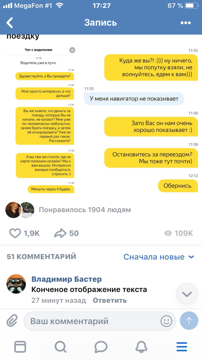 Исходный пост Погоня за Яндекс.Такси