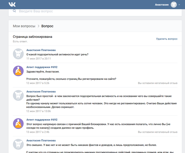 Как и ожидалось переписка оказалась недолгой, поскольку обьяснить они толком ничего не смогли, а отписывались общими фразами в стиле "есть основания". А в конце тупо игнор!