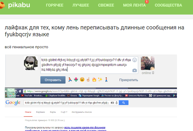 Теперь, если вы набираете русский текст на английской раскладке, Пикабу вовремя это заметит и предложит вам исправить текст на русский