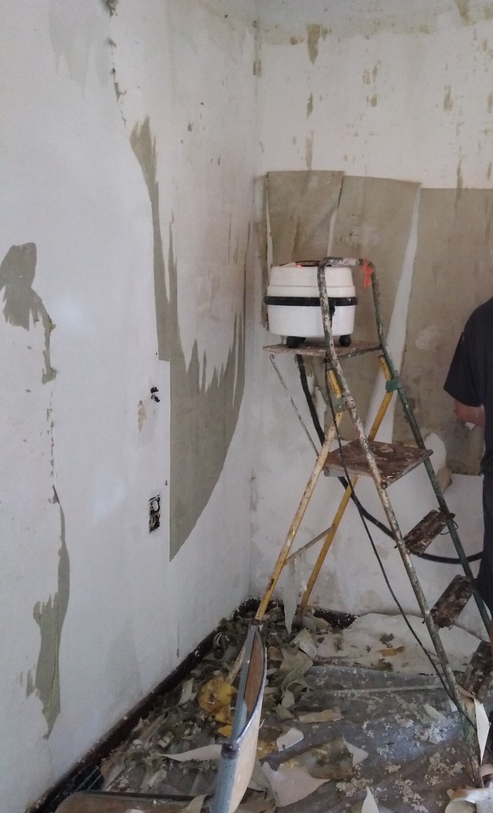 Собрав воедино обрывочные сведения от доверчивого населения посредством простого вопроса через ФБ и вооружившись экземпляром собственного изобретения, а так же раздобыв тестовый вариант соседей итальянцев, группа исследователей (это опять мы) приступила к работе над третьей комнатой. Окатывая паром стены третьей подопытной комнаты уже из двух пылесосов, французского и итальянского, исследователи пришли к выводу, что хрен редки не слаще. И по сему нужно использовать запасной вариант: просто мочить обои перед обдиркой, как советовало опытное население ФБ.