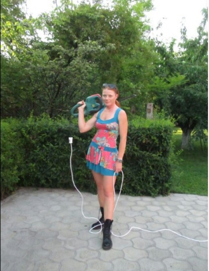 Садовник, 1 га территория. Трактор, навоз, лопата, кусторез, пила, мотокоса, сад на 50 деревьев, бассейн, теплица. С мая по сентябрь работает в купальнике, фитнес на свежем воздухе. @Feklafedor