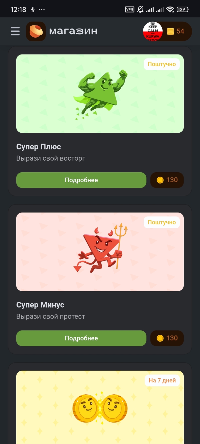 После окрылённого успеха - можно будет пойти дальше, да сделать приложение-игру тут внутри. Какую-нибудь куриную ферму, где ты за 1 000/5 000/10 000 монеток пикабу покупаешь курицу, которая тебе каждый час приносит по 0.01/0.05/0.1 яйцу.