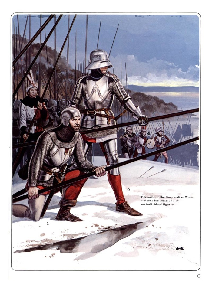 Пики, упоминающиеся в Европе, как минимум, с XII века, в отличие от сарисс, не имели противовесов, ибо при отражении атаки кавалерии их тупой конец упирался в землю. За счёт применения наконечника минимального размера и изготовления древка из сравнительно лёгкого дерева, вес пик удерживался на уровне 4,5 кг, однако точка приложения этой силы имела рычаг порядка двух метров, что делало пику крайне неудобной для удержания. В бою с пехотой пикой не наносили ударов, её просто направляли на врага и наступали. Конец пики при этом зажимался под мышкой, только так её можно было удержать горизонтально. Либо, если пикинёры располагали кирасами (что стало обычным с конца XV века), тупой конец пики упирался в специальных держатель — «ток», приваренный к кирасе. Такой мерой удавалось достичь более жёсткой фиксации пики, что было важно при продавливании ею вражеских доспехов, и несколько увеличить её эффективную длину.
