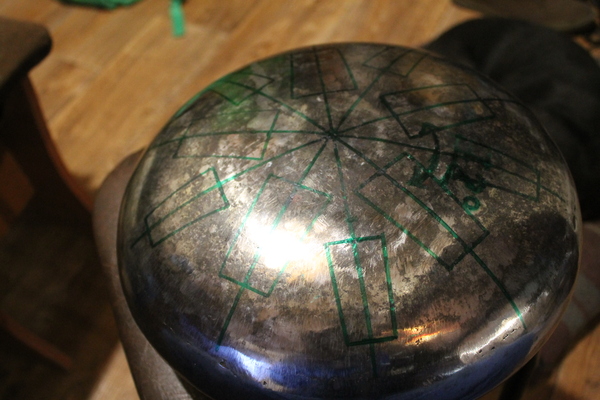Согрелись, делаем разметку. Находим центр и от него чертим линию, затем под углом 72 градуса вторую и т.д.