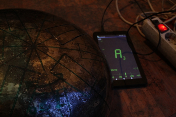 И вот теперь снова стоп. Открываем наш тюнер и проверяем получившуюся ноту, если вы внимательно читали и не резали до конца, то эта нота должны быть выше искомой, как видим на фото выше Ля диез, даже почти Си. Берём наш инструмент и потихоньку пропиливаем вниз, всё время проверяя ноту по тюнеру. В конце концов добиваемся нужной ноты.