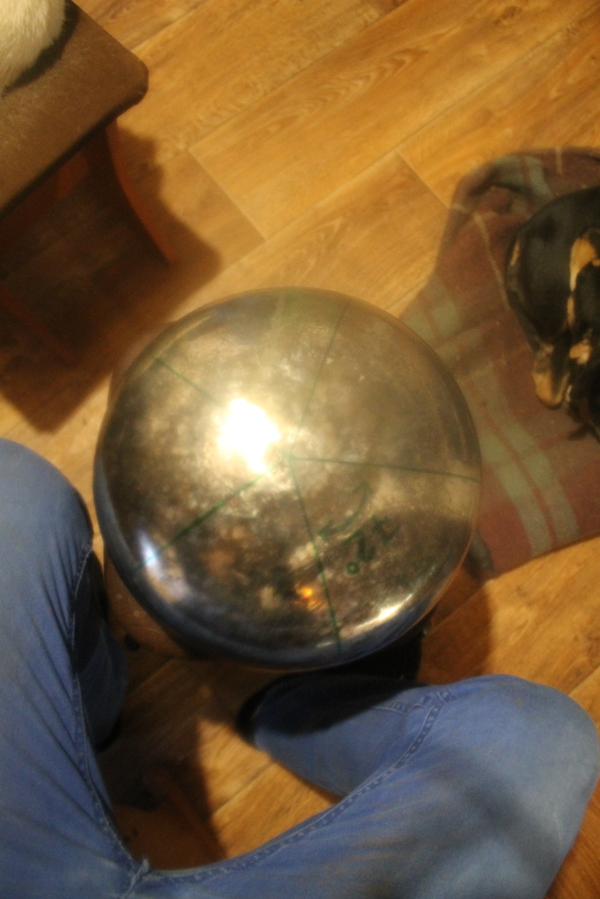 После сварки наступает самая утомительная часть этого действа - шлифовка. Зачищаем швы и снимаем краску, её похоже используют для покраски военной техники или для создания бронепокрытия я хз, но её полностью можно удалить только УШМ со шлифовальным диском, ну и лепестковым потом пройтись. Получается такой вот НЛО.