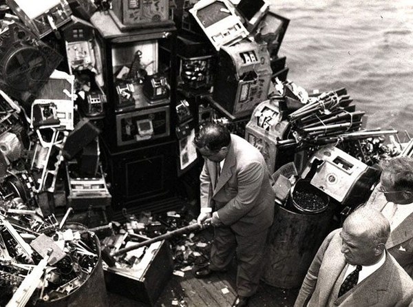 Рейды сыграли на руку публичной карьере коварного Ла Гуардии. Мэр мог ссылаться на них, утверждая, что он не собирается цацкаться с преступным миром. Конфискованные машины уничтожали и использовали в военных целях, и для удовлетворения дефицита, возникшего в результате войны в Старом Свете. В одном из радиообращений мэр поведал слушателям, что из одного пинбольного автомата можно изготовить 77 медных пуговиц для офицеров полиции. Часть некоторых машин были отправлены в учебные заведения (Колумбия), чтобы быть использованными в электронных исследованиях, в то время как другие были переплавлены на пули и бомбы. На одном публичном мероприятии комиссар полиции Нью-Йорка Валентайн похвастал перед мэром железными полицейскими дубинками, сделанными из ножек автоматов. «Послушайте, как они прекрасно позванивают», — сказал Валентайн мэру, постукивая дубинками друг об друга. «Я хотел бы услышать, как они будут звенеть об головы ничтожеств, причастных к пинболу», — ответил мэр.