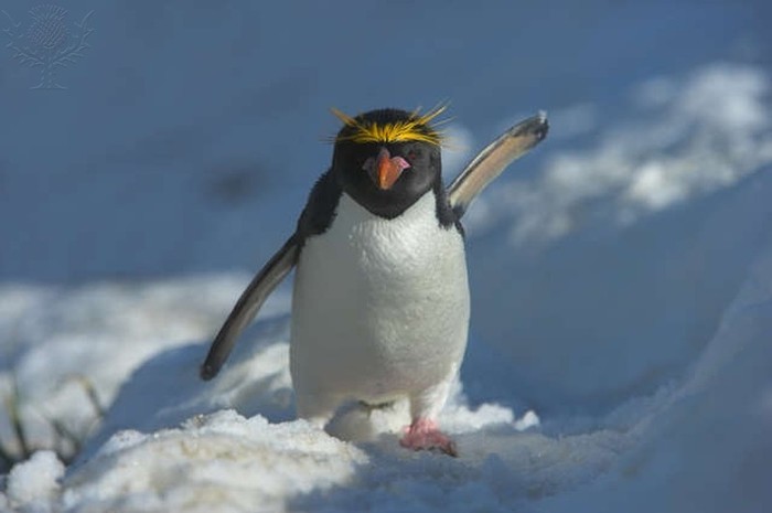 А пингвин идет. И топчет.