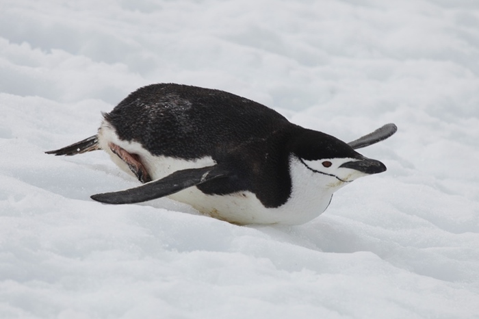 Пингвин идет по снегу. Представляется, что событие значимое. По крайней мере, для нас — людей южных.