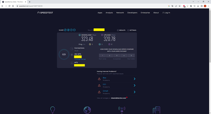 2) Проверяю параллельно скорость интернета (мало-ли)