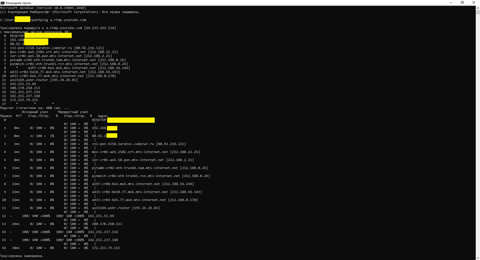 5) Звоню оператору (это отдельный ад, учитывая, что там надо прорваться через робота), рассказываю всё как есть, указываю проблемные IP адреса. При звонке мне перезагружают моё подключение, просят ещё раз проверить (ясен пень ничего не меняется). Составляют обращение: