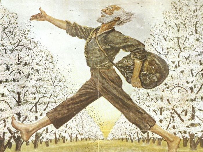 История Джона Чепмена, более известного как Джонни Эпплсид, тесно связана с освоением Америки. В начале 1800-х годов он путешествовал по тогдашним приграничным территориям, сажал семена яблонь и помогал первопроходцам обустраивать дикую местность. Он посадил более 100 000 квадратных миль яблоневых садов в западной Пенсильвании, Огайо и Индиане. Некоторые из этих садов хорошо задокументированы и существуют до сих пор. Деревья в этих садах вполне могут быть потомками тех, что он посадил, — как в результате посева, так и в результате прививки.