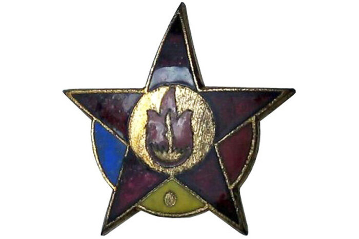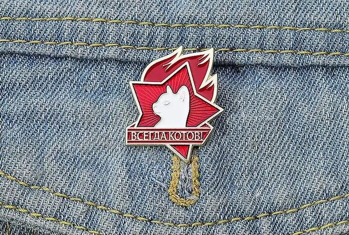 Значки были довольно стильные - книга, флаг и три языка пламени