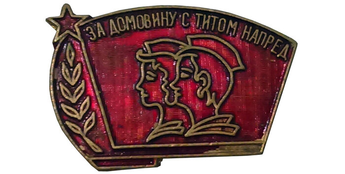 Девиз югославских пионеров звучал как "Za domovinu c Titom naprijed!" (девиз на значках писался в двух вариантах - кирилицей - как на фото выше, и латиницей), что в переводе означало «За родину с Тито вперед!»