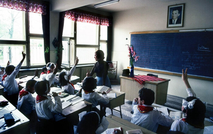 Портрет Чаушеску в классе. Судя по фото - середина-конец восьмидесятых годов. В 1989 года Чаушеску расстреляют вместе с женой...