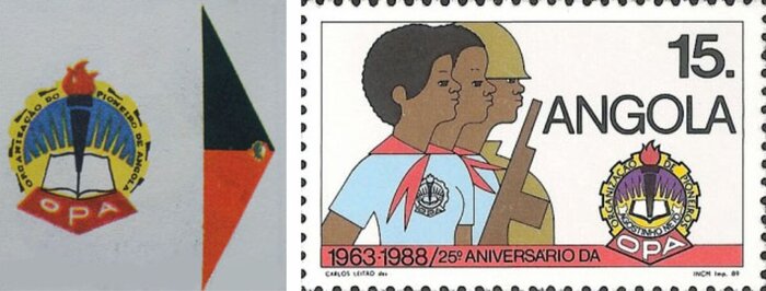 В наши дни в Анголе вновь рулят социалисты, пионеры в Анголе до сих пор есть. С эмблемы "ушёл" факел и поменялась её цветовая гамма, галстуки стали белыми.