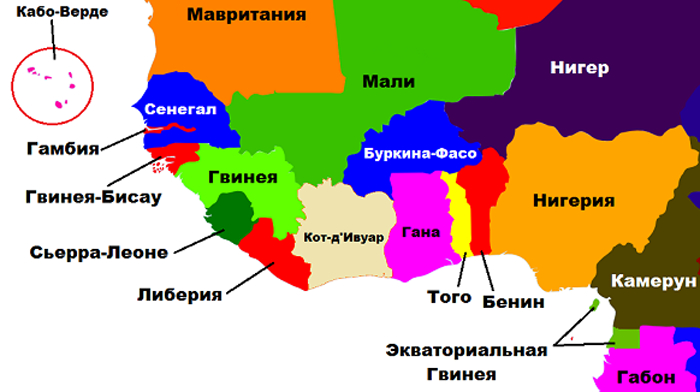 "А где просто то?" - скажете вы. Да, везде не просто, но в Африке особенно. Этих Гвиней в Африке на сегодняшний день аж целых 3! Две рядышком (Гвинея-Бисау и просто Гвинея), а одна (Экваториальная Гвинея) южнее. Причём раньше их было ещё больше.