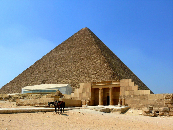 Самая большая, высотой 138,7 м. Построена из 2,3 миллиона блоков, каждый весом около 2,5 тонны. Внутрь пускают за отдельную плату: узкие коридоры ведут к Большой галерее и Камере царя с пустым саркофагом. Сокровищ там нет — всё украдено сотни лет назад. Но само ощущение, что идёшь по путям, проложенным 4500 лет назад, впечатляет.