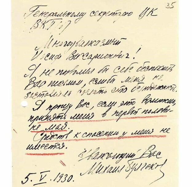 К 1930 году положение Булгакова стало критическим: полное запрещение произведений, отсутствие средств к существованию, невозможность устроиться на работу. 28 марта 1930 года Булгаков пишет знаменитое письмо Сталину с просьбой либо разрешить работать, либо отпустить за границу. Результатом стал телефонный звонок Сталина и устройство Булгакова во МХАТ ассистентом режиссера.