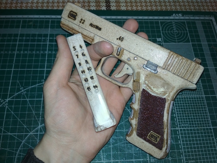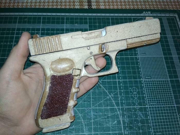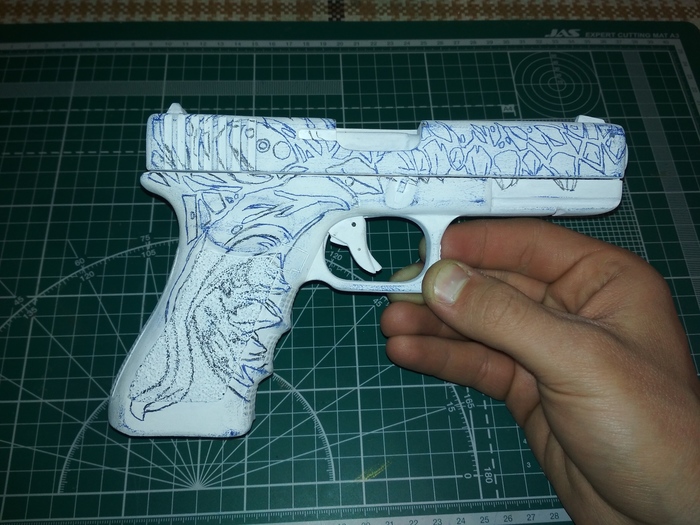 Затем с помощью гравера я убрал неровности в слоях глока и придал ему формы по фото из интернета