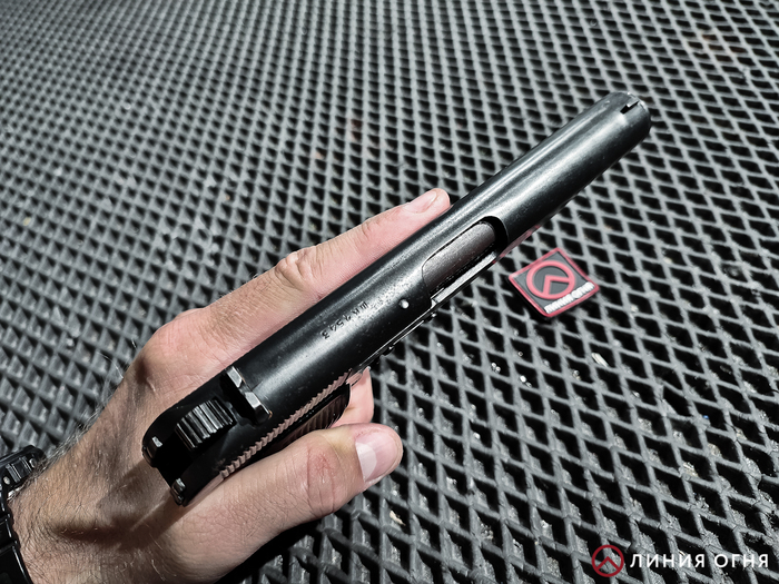 Пистолет Лидер сделали максимально аутентичным. Он реально почти полностью повторяет ТТ. Название пистолета, его калибр и прочие новодельные нанесения надежно спрятаны на внутренней части затвора, их просто не видно.