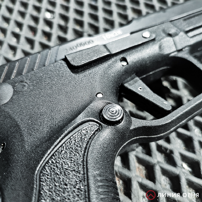 Клавиша сброса магазина выведена на обе стороны. Здесь она увеличенного размера. Иногда, у некоторых экземпляров, она может туго нажиматься. Это тоже всё решаемо, если такая проблема вообще образовалась.