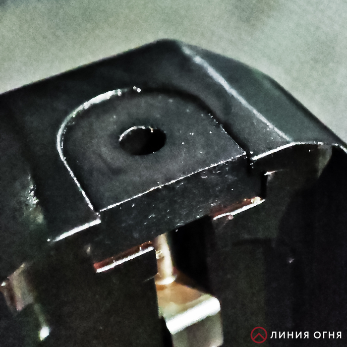 На месте классических флажковых предохранителей установлены пластиковые заглушки. Смотрится вроде нормально, но некоторым не нравится. Просто так получилась, что эта оболочка используется и в пистолете Grand Power T-11.