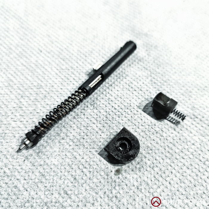 Остальные элементы УСМ не вызывают никаких вопросов. Даже самые мелкие детали выполнены очень качественно. Возвратная пружина здесь листовая, довольно жесткая.