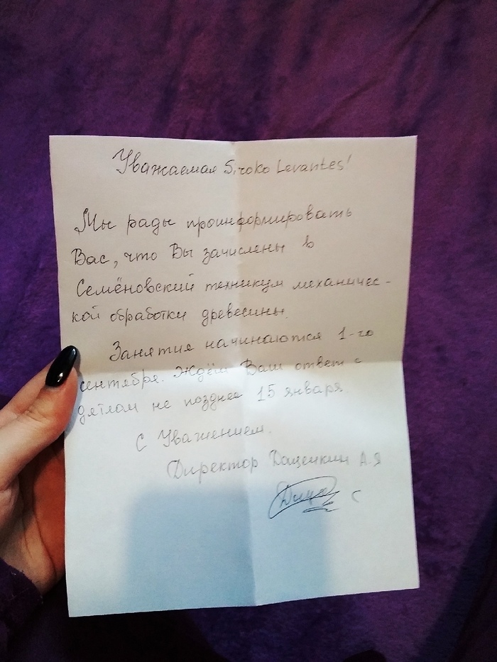 Состарено вручную. Кляксой закрыты данные получателя, не хочу палить.
