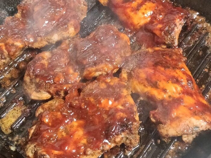 Пока готовится мясо, сотейник с маринадом поставьте на средний огонь, доведите до кипения и варите 1-2 минуты.