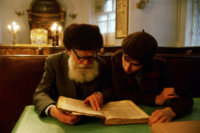 17. 1993, Западный берег - - - идя мимо пламени на улице, ортодоксальный еврейский поселенец, молится во время утренней демонстрации на Западном берегу р. Иордан