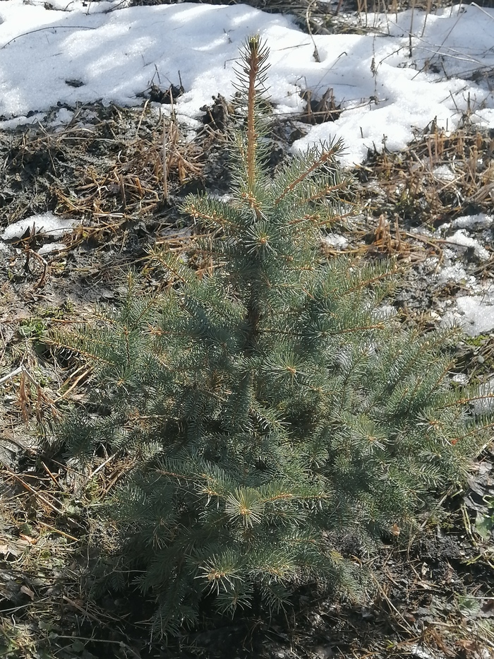 Обычная зеленая ель. В 2018 году посажена семечком. При пересадке на постоянное место был поврежден корень.