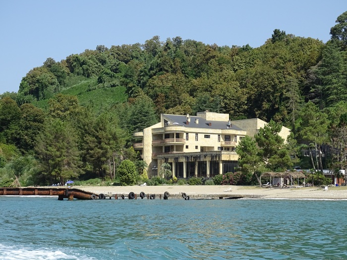 Именно поэтому все четыре дня пребывания под Пицундой в Лдзаа мы и не планировали ездить на какие-либо экскурсии, а пребывать только в Лдзаа или самой Пицунде.Однако к последнему дню мы решили выбраться куда-то в окрестности Пицунды и решили посетить место впадения реки Бзыбь в Черное море.