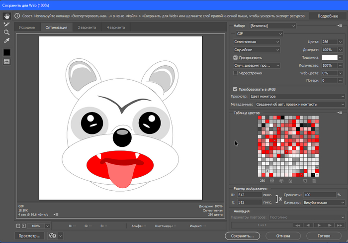 Но не забудьте обратить на настройки в этом окне, чтобы формат стоял именно GIF.