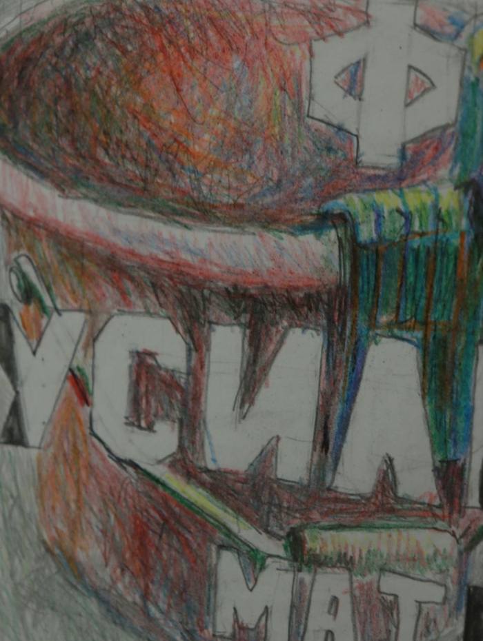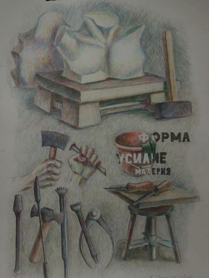 Тема скульптора. Бумага, цветные карандаши 70х100см
