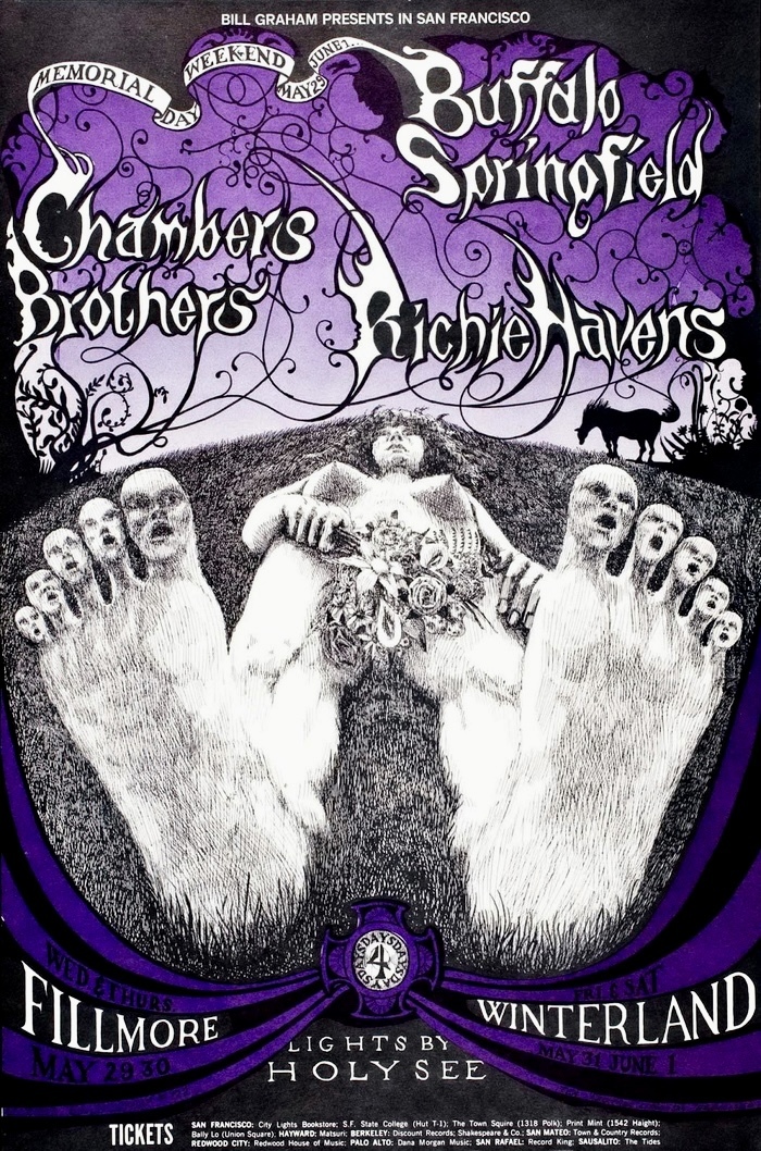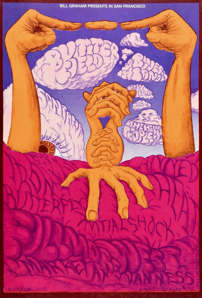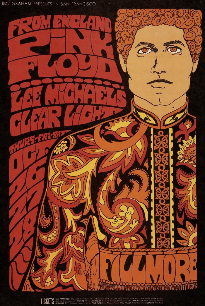 Точкой вдохновения этого направления была музыка. The Beatles, Jefferson Airplane, Pink Floyd и прочие группы в тот период активно экспериментировали со звуком. И именно обложки альбомов и афиши концертов стали главными полотнами художников и дизайнеров, работающих в психоделическом стиле.