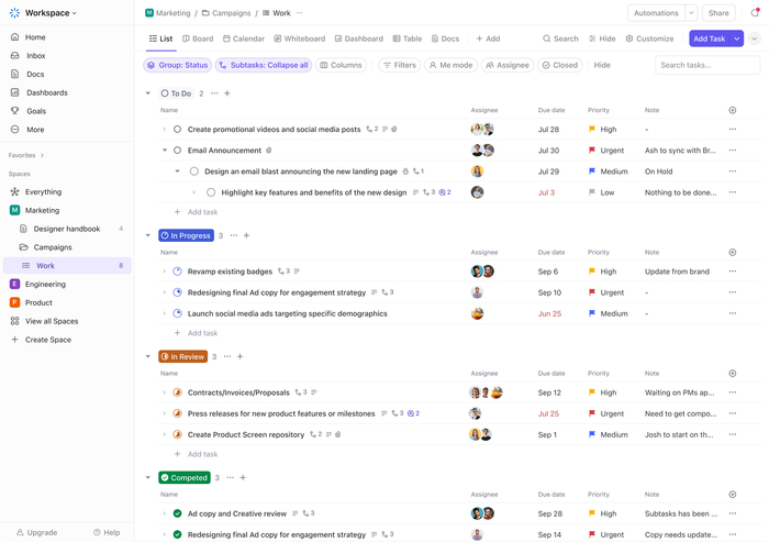 ClickUp — американское канбан приложение нового поколения. В нём можно настроить десятки представлений: список, доска, календарь, mindmap, timeline и многое другое.