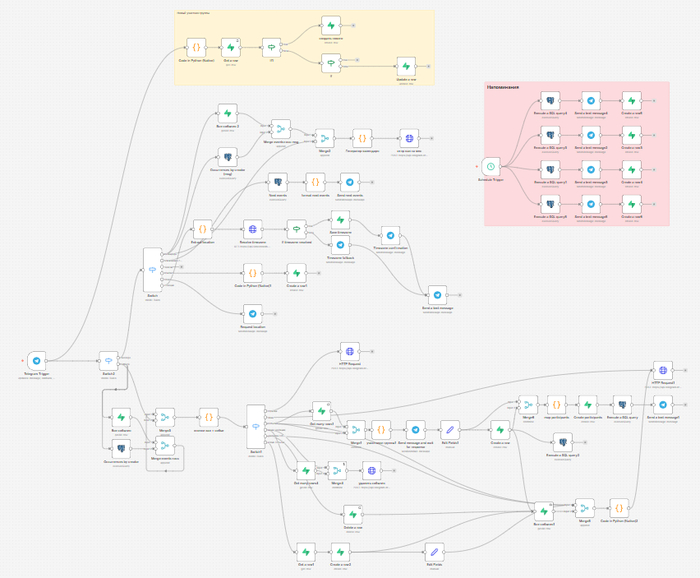 Всё начиналось с нескольких нод и с каждым днем обрастало новыми ветками. Самое главное, что бот РАБОТАЛ и выполнял основные функции: