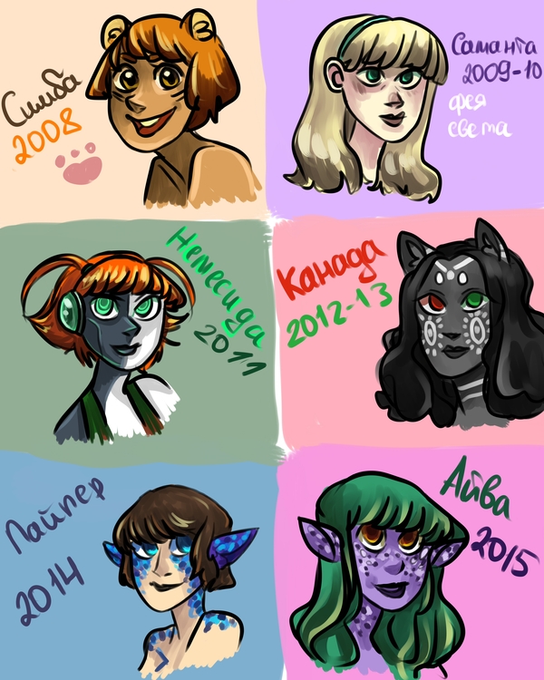 9 июня. Вспоминала всех моих женских персонажей за 8 лет. Если честно, не помню почему антропоморфную кошку зовут Канадой, ну да ладно:)