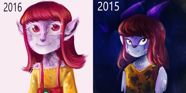 Совсем недавно решила перерисовать свою старую работу которой около года до сегодняшнего времени и пол года с того момента когда я впервые села за планшет. Я как начинающий художник вижу что все плохо, и надо совершенствоваться все дальше и дальше, но хотелось бы просить у вас, есть прогресс или нет?