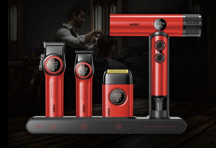VGR Stepless Pro представляет собой многофункциональный триммер с четырьмя насадками для ухода за волосами и бородой. Плавная регулировка длины упрощает настройку под разные задачи без смены большого количества аксессуаров. Беспроводной формат повышает удобство использования и мобильность.