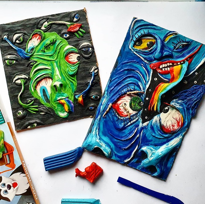 Портрет друга, мамы, бабушки, папы,любимой супруги (как в этом случае), собаки, кошки...из пластилина 😜