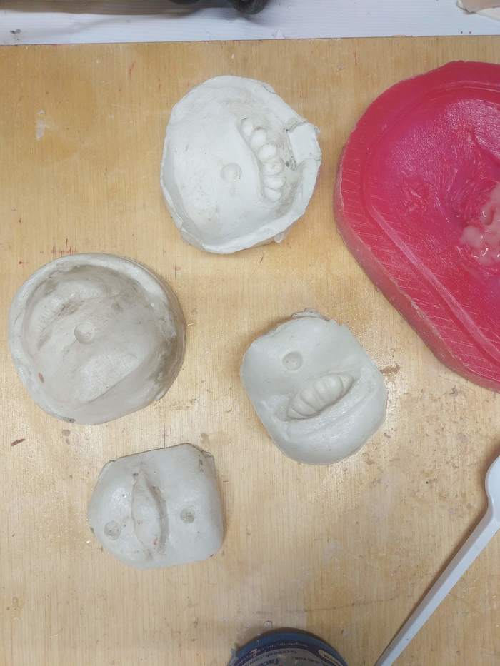 Самым простым по отливке оказались губы. Главное делать это удовольствие на разных площадках для верхней и нижней губы, с заметным уходом детали вглубь рта. Это связано с тем, что по слизистой клеиться очень тяжело и не комфортно, но что важнее не долговечно. А почему? Потому что там слюна и подвижные мышцы. А при такой отливке прячем широкий край детали внутрь губы, остальной край клеем стандартным способом и профит!