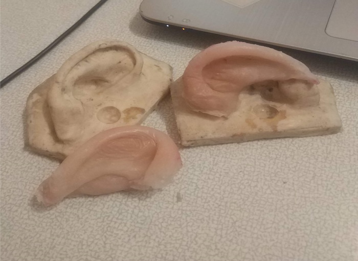 На фото останки ушек после съемки, да, деталька одноразовая. И большинство деталей для пластического грима одноразовые. Ну хочется же с тонким краем, что бы не видно было, ну как в Голливуде? Ну тогда надо смириться, что деталь одноразовая и проживет на актере тоже ограниченное время. Это не заговор гримеров, правда. Это бессердечная физика...