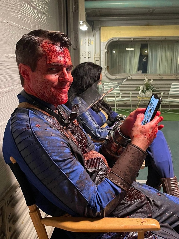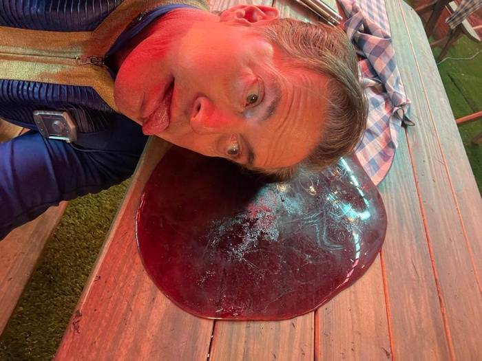 Конечно, самый сложный момент это опять пресловутые носогубные мимические мышцы. Хотя актер и ел, и пил, и пел. Поэтому, если присутствуете на площадке с таким гримом, то имейте про запас несколько комплектов губ и/или подбородков, что бы можно было переклеивать.